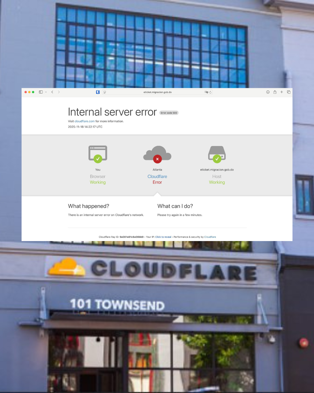 La mañana de este martes, una falla global en Cloudflare, uno de los proveedores de infraestructura digital y seguridad más utilizados del mundo, provocó interrupciones en numerosos servicios y plataformas en distintos países. Entre los sistemas afectados se encontró el E-Ticket de Migración de la República Dominicana, herramienta indispensable para el registro de entrada y salida de viajeros.