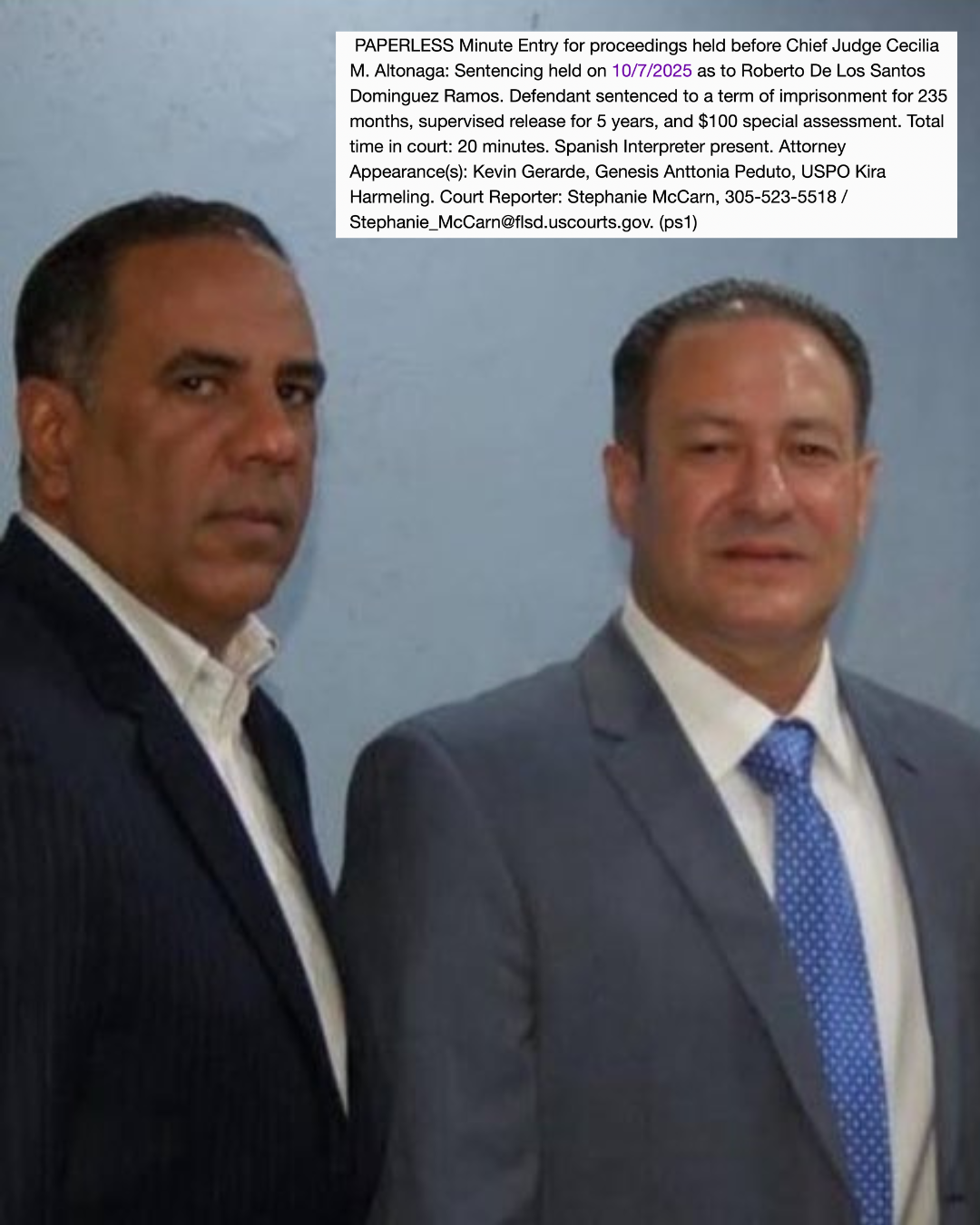 La jueza jefa Cecilia M. Altonaga, del Tribunal Federal del Distrito Sur de Florida, dictó este lunes una sentencia de 235 meses de prisión (19 años y medio) contra Roberto De los Santos Domínguez Ramos, conocido como “El Chino Domínguez”, tras ser hallado culpable de conspirar para traficar cocaína hacia Estados Unidos como parte de una red transnacional con vínculos en República Dominicana, Colombia y puertos del Caribe.