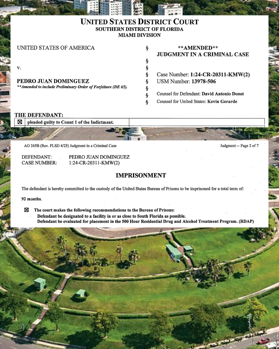 De acuerdo con el fallo emitido por la jueza federal Kathleen M. Williams en el Distrito Sur de Florida, Domínguez admitió su participación en la distribución de más de cinco kilogramos de cocaína con conocimiento de que serían importados ilegalmente al país.